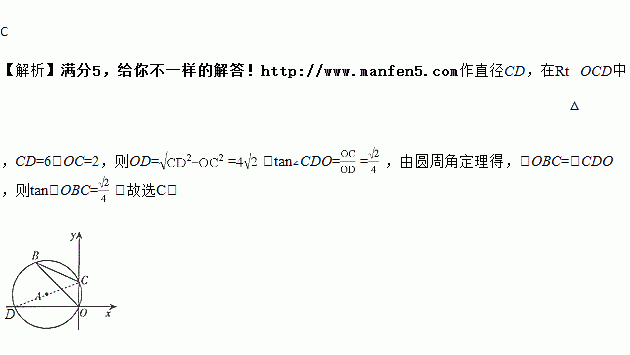 如图,半径为3的⊙A经过原点O和点C(0,2),B是y轴左侧⊙A优弧上一点,则tan∠OBC为( )