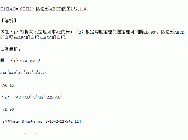 (1)求AC的长;(2)求四边形ABCD的面积.
