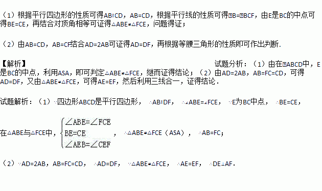 如图,在?ABCD中,E是BC的中点,连接AE并延长交DC的延长线于点F.