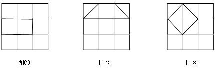 16、有三个3×3的正方形网格,网格中每个小正方形的边长均为1.请在图①、图②、图③中各画出一个面积为2,形状不同的四边形,要求顶点均在正方形的格点处,且四边形为轴对称图形.