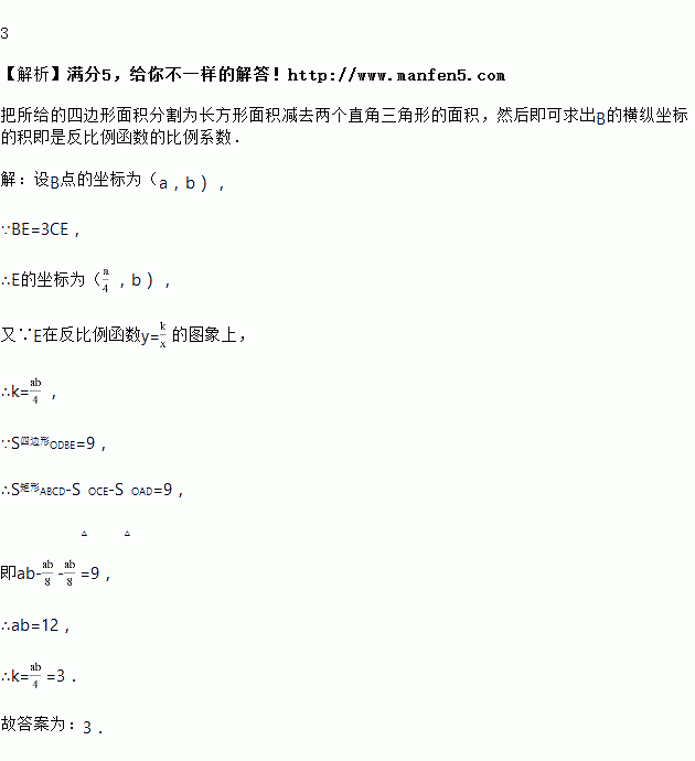 如图,在以为原点的直角坐标系中,点、分别在轴、轴的正半轴上,点在第一象限,四边形是矩形,反比例函数与相交于点,与相交于点,若,四边形的面积是,则________.