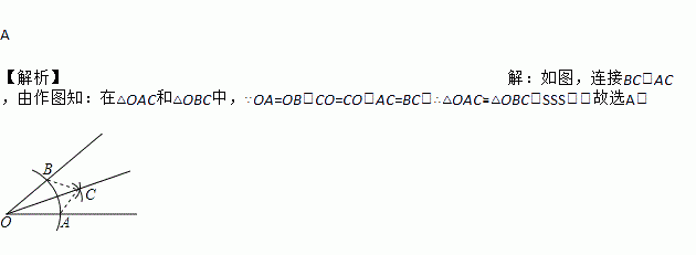 A 【解析】【解析】 如图,连接BC,AC,由作图知:在△OAC和△OBC中,∵OA=OB,CO=CO,AC=BC,∴△OAC≌△OBC(SSS),故选A.