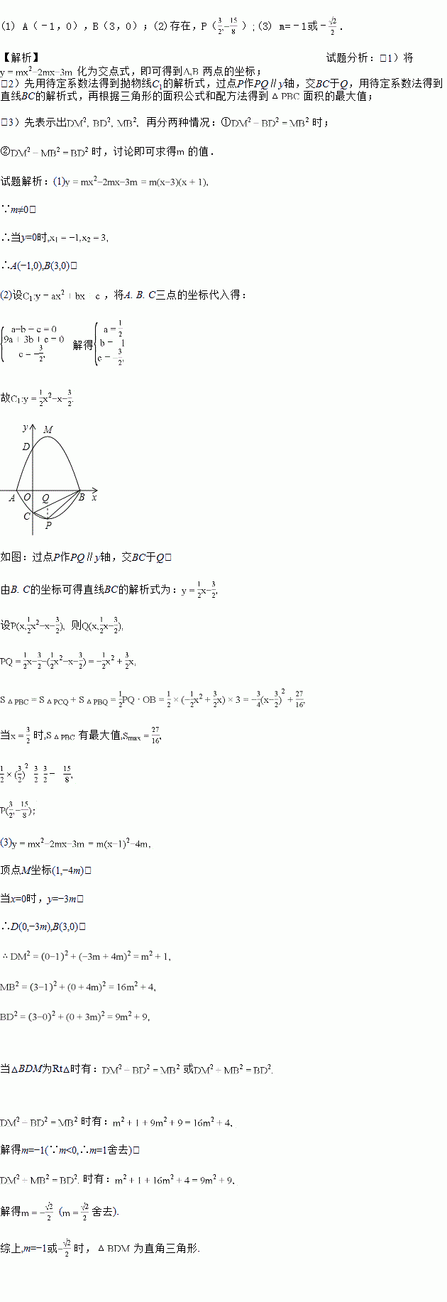 (3)当△BDM为直角三角形时,求m的值.
