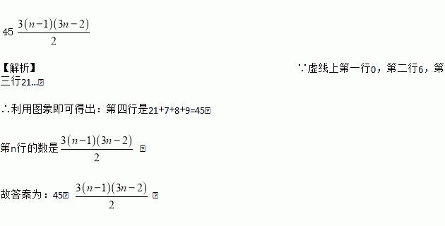 这是一根起点为0的数轴,现有同学将它弯折,如图所示,例如:虚线上第一行0,第二行6,第三行21…,第4行的数是_____,第n行的数是_____(用n表示).