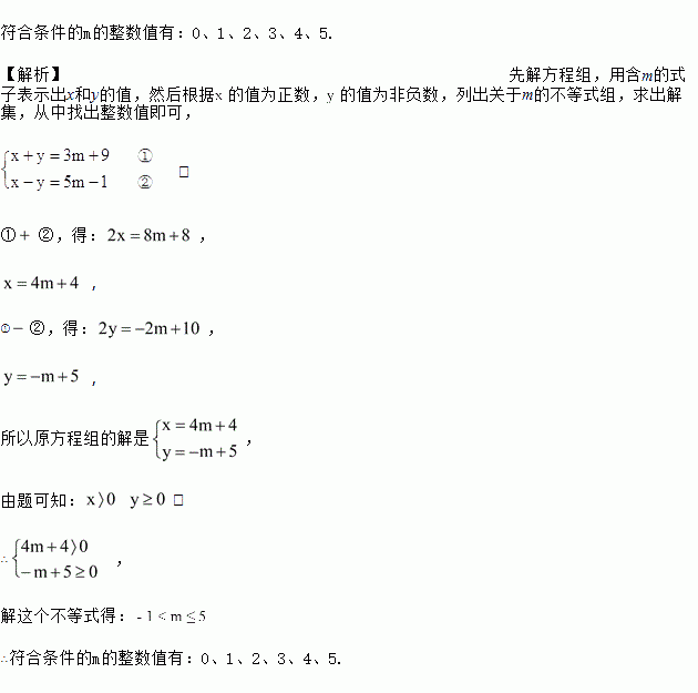 已知关于、的方程组中,的值为正数,的值为非负数,求符合条件的的整数值.