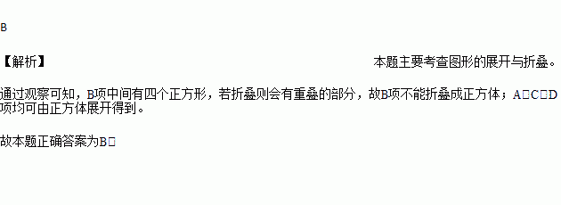 将正方体展开后,不能得到的展开图是( )
