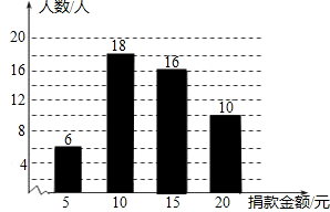 (1)由于捐20元的有10人,所占比例为20%,故总人数=10÷20%=50人;