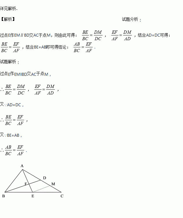 在中,BD是AC边上的中线, ,且AE与BD相交于点F,试说明: .