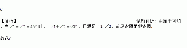 对于命题“如果∠1+∠2=90°,那么∠1≠∠2”,能说明它是假命题的反例是( )
