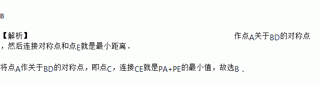 如图,在菱形ABCD中,E为AB中点,P是BD上一个动点,则下列线段的长度等于PA+PE最小值的是( )