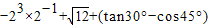 根据特殊角的三角函数值、非0实数的负整数次幂计算.