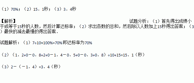 某班10名男同学参加100米达标测验,成绩小于或等于15秒的达标,这10名男同学成绩记录如下(其中超过15秒记为“+”,不足15秒记为“﹣”):
