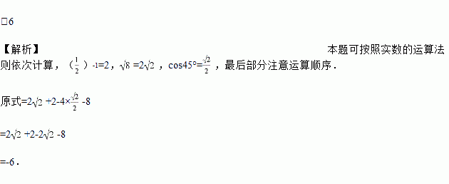 计算:-4cos45°-2÷×2.