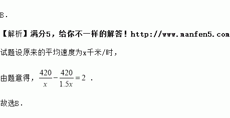 甲乙两地相距420千米,新修的高速公路开通后,在甲、乙两地行驶的长途客运车平均速度是原来的1.5倍,进而从甲地到乙地的时间缩短了2小时.设原来的平均速度为x千米/时,可列方程为( )