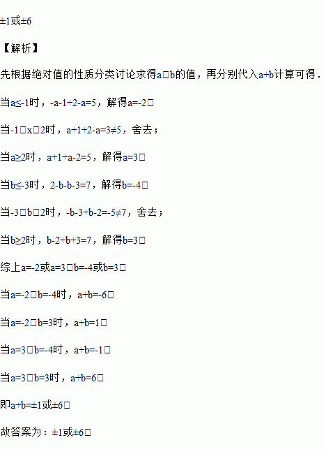 若|a+1|+|a﹣2|=5,|b﹣2|+|b+3|=7,则a+b=_____.