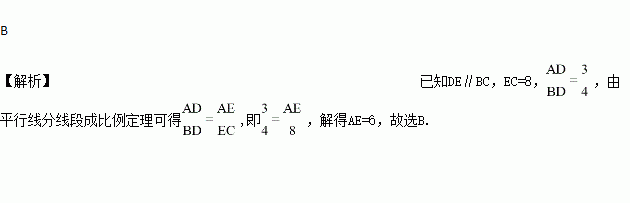如图,在△ABC中,点D,E分别在边AB,AC上,DE∥BC,EC=8,,则AE的长是( )