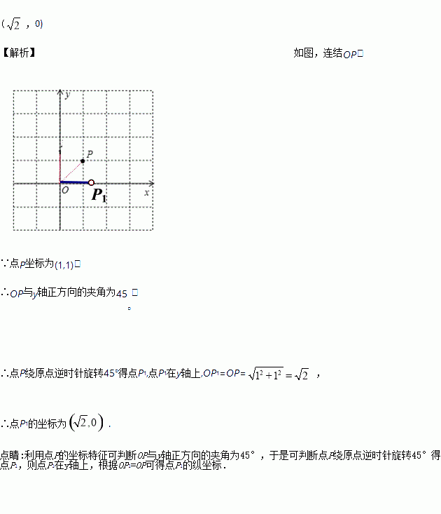 已知点P的坐标为(1,1),若将点P绕原点顺时针旋转45°,得到点P1,则点P1的坐标为_____.