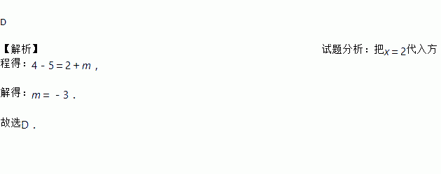 已知x=2是方程2x﹣5=x+m的解,则m的值是( )