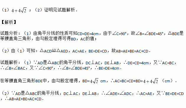 (1)已知CD=4cm,求AC的长;