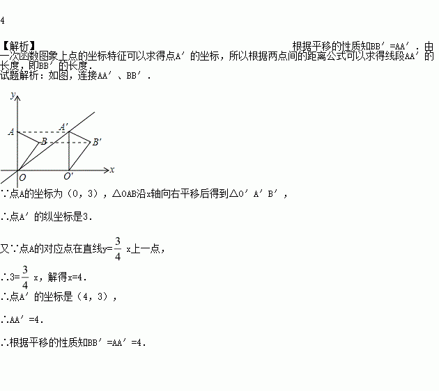如图,在平面直角坐标系中,点A的坐标为(0,3),△OAB沿着x轴向右平移后得到△O1A1B1,点A的对应点A1是直线