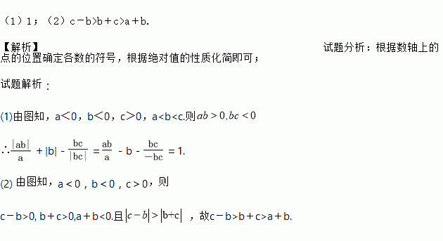 (2)比较a+b,b+c,c-b的大小,用“>”号将它们连接起来.