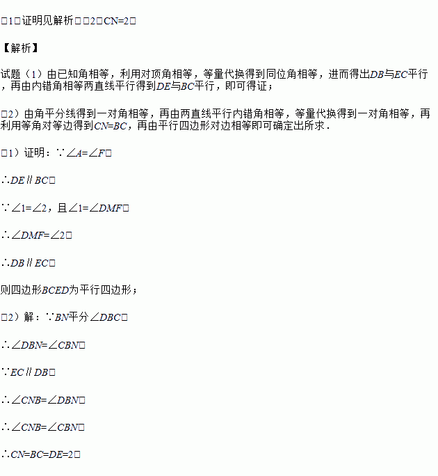 (2)已知DE=2,连接BN,若BN平分∠DBC,求CN的长.