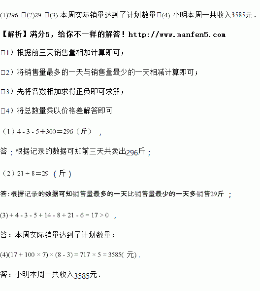 (2)根据记录的数据可知销售量最多的一天比销售量最少的一天多销售 ______ 斤;