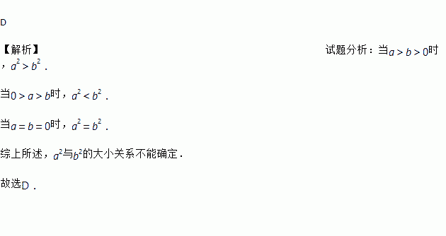 A. a2>b2 B. a2<b2 C. a2=b2 D. 不能确定