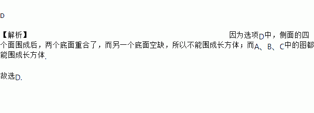 下面图形不能围成一个长方体的是( )