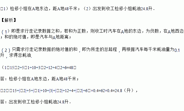 (2)若每千米汽车耗油量为0.4升,求出发到收工汽车耗油多少升.