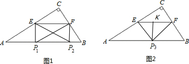 当EF的中垂线PK交AB于P,交EF于K,且EF=2PK时,△PEF是等腰直角三角形,