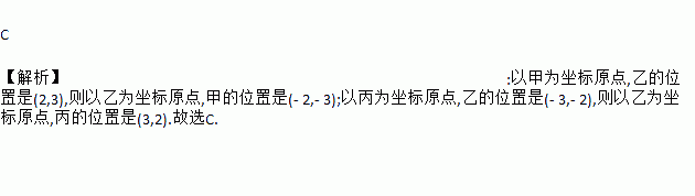 C 【解析】:以甲为坐标原点,乙的位置是(2,3),则以乙为坐标原点,甲的位置是(- 2,- 3);以丙为坐标原点,乙的位置是(- 3,- 2),则以乙为坐标原点,丙的位置是(3,2).故选C.