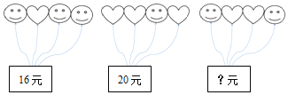 小岩打算购买气球装扮学校“毕业典礼”活动会场,气球的种类有笑脸和爱心两种,两种气球的价格不同,但同一种气球的价格相同.由于会场布置需要,购买时以一束(4个气球)为单位,已知第一、二束气球的价格如图所示,则第三束气球的价格为( )