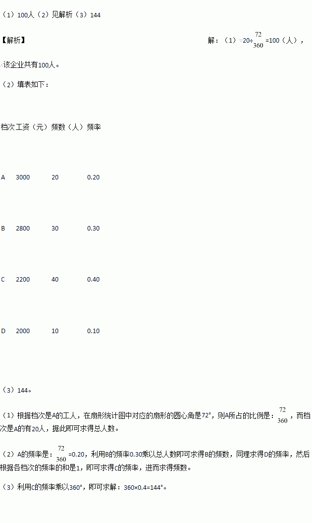 某小型企业实行工资与业绩挂钩制度,工人工资分为A、B、C、D四个档次.小明对该企业三月份工人工资进行调查,并根据收集到的数据,绘制了如下尚不完整的统计表与扇形统计图.