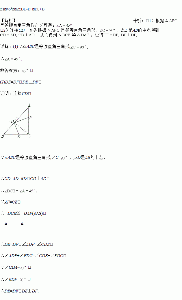 如图,△ABC是等腰直角三角形,∠C=90°,点D是AB的中点,点E,F分别在BC,AC上,且AF=CE.