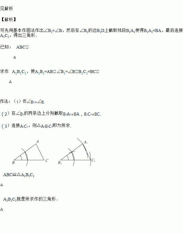 如图,已知△ABC,求作△A1B1C1,使△ABC≌△A1B1C1.