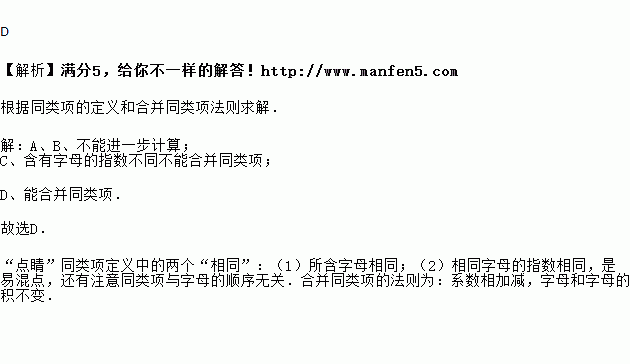A. 4+5ab=9ab B. 6xy﹣y=6x