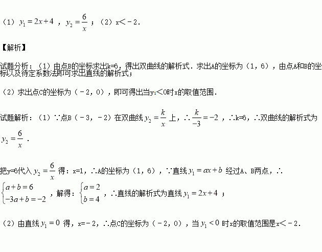 (1)求直线和双曲线的解析式;