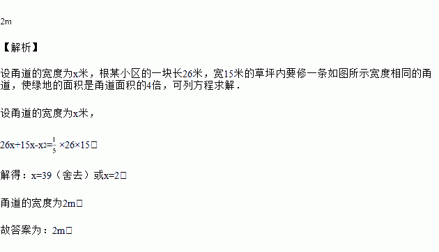 某小区的一块长米,宽米的草坪内要修一条如图所示宽度相同的甬道,使绿地的面积是甬道面积的倍,甬道的宽度为________.