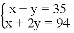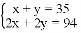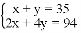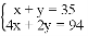 “今有鸡兔同笼,上有三十五头,下有九十四足,问鸡兔各几何?”设鸡为x只,兔为y只,则所列方程组正确的是( )