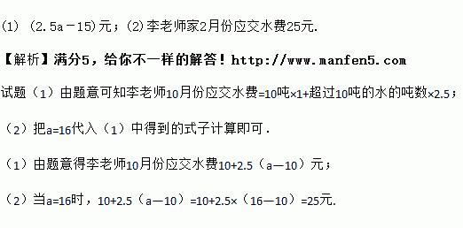 为了节约用水,某自来水公司采取以下收费方法:每户每月用水不超过10吨,则每吨水收费1元,如果每户每月用水超过10吨,超过部分按每吨2.5元收费,现在李老师家2月份用水a吨(a>10).