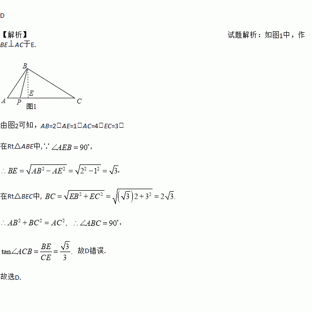 A. AB=2 B. AC=4 C. ∠ABC=90° D. tan∠ACB=![]()