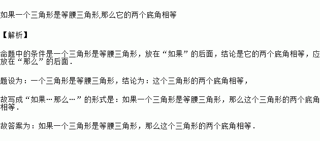 请将命题"等腰三角形的底角相等"改写为"如果……,那么……"的形式:____________________________________.