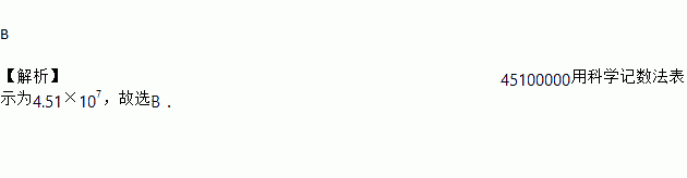 2016年春节期间,在网络上用“百度”搜索引擎搜索“开放二孩”,能搜索到与之相关的结果个数约为45100000,这个数用科学记数法表示为( )