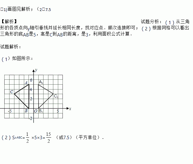 (1)请画出△ABC关于y轴对称的△A′B′C′(其中A′,B′,C′分别是A,B,C的对应点,不写画法);