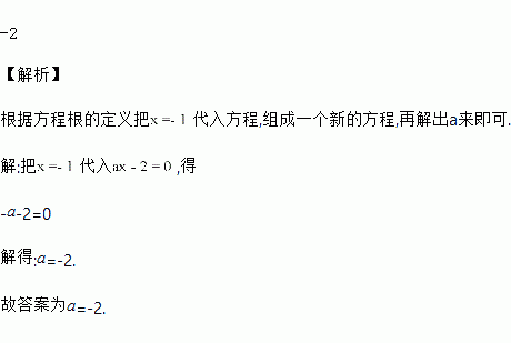 已知x=﹣1是关于x的方程ax﹣2=0的根,则a的值是_____.