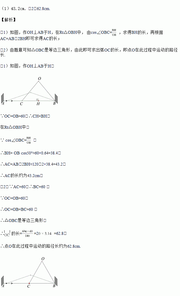 (参考数据:sin50°≈0.77, cos50°≈0.64, tan50°≈1.19, π取3.14)