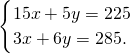 分析:等量关系为:15个笔袋总价+5支钢笔总价=225元;3个笔袋总价+6支钢笔总价=285元,把相关数值代入后看求得的单价是否符合实际情况即可.
