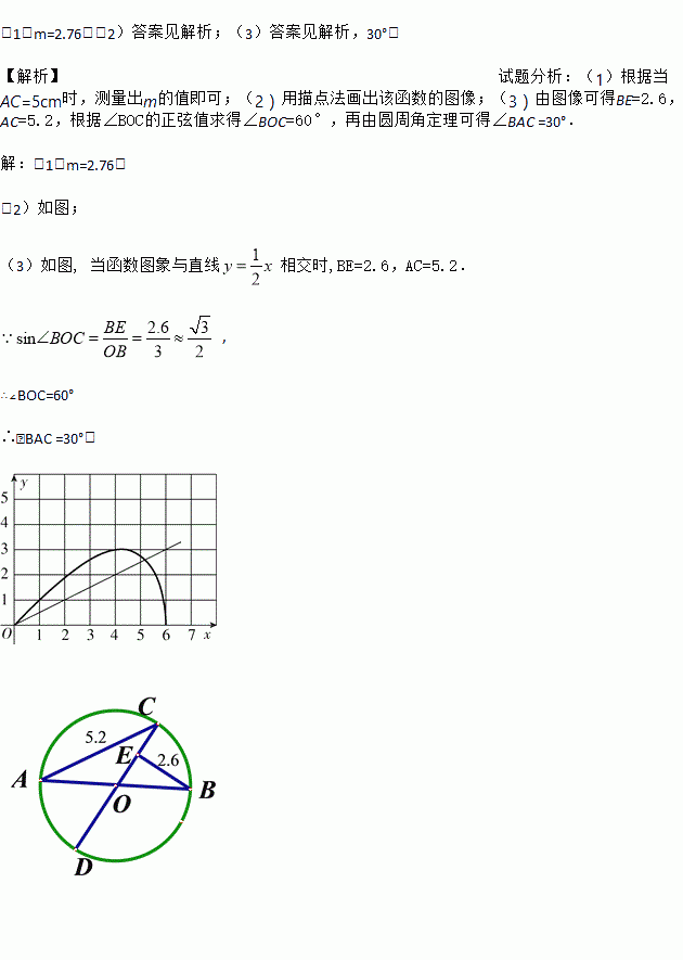 (1)通过取点、画图、测量,得到了x与y的几组值,如下表: