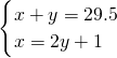 分析:(1)设甲村庄得到网易的此次捐款为x万元,乙村庄得到网易的此次捐款为y万元,根据网易再向旱区捐资29.5万元可以列出方程x+y=29.5,根据甲村的资金是用于乙村的资金的2倍还多1万元可以列出方程x=2y+1,联立两个方程组成方程组,解方程组即可求出甲、乙两个村庄分别得到网易的此次捐款数目;